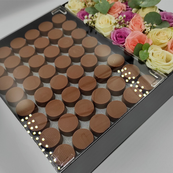 We design the chocolates and the gift boxes regarding your requirements. We do Customised Design Chocolates regarding Birthday function, Ceremonial Function, Gift boxes decorated with fresh flowers. We have door delivery in all over the UAE
