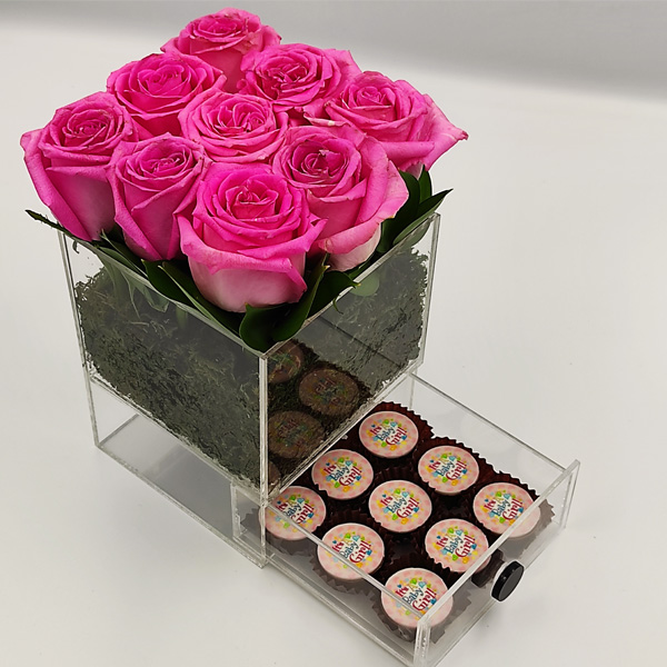 We design the chocolates and the gift boxes regarding your requirements. We do Customised Design Chocolates regarding Birthday function, Ceremonial Function, Gift boxes decorated with fresh flowers. We have door delivery in all over the UAE